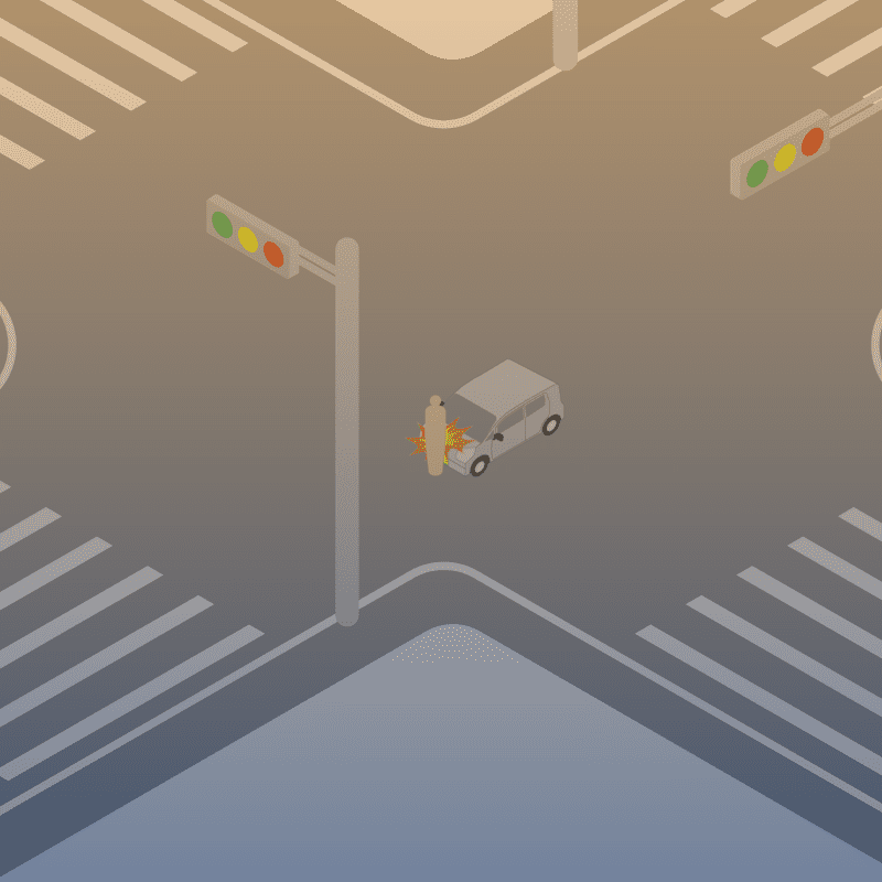 ・イラストに使用している各要素(車、背景、車、天候、信号、衝突地点など)は、代表的なイメージをイラスト化しており、色や形状等含め現実の事故の状況とは異なります。あくまで、事故のイメージとして参考までにご活用ください。