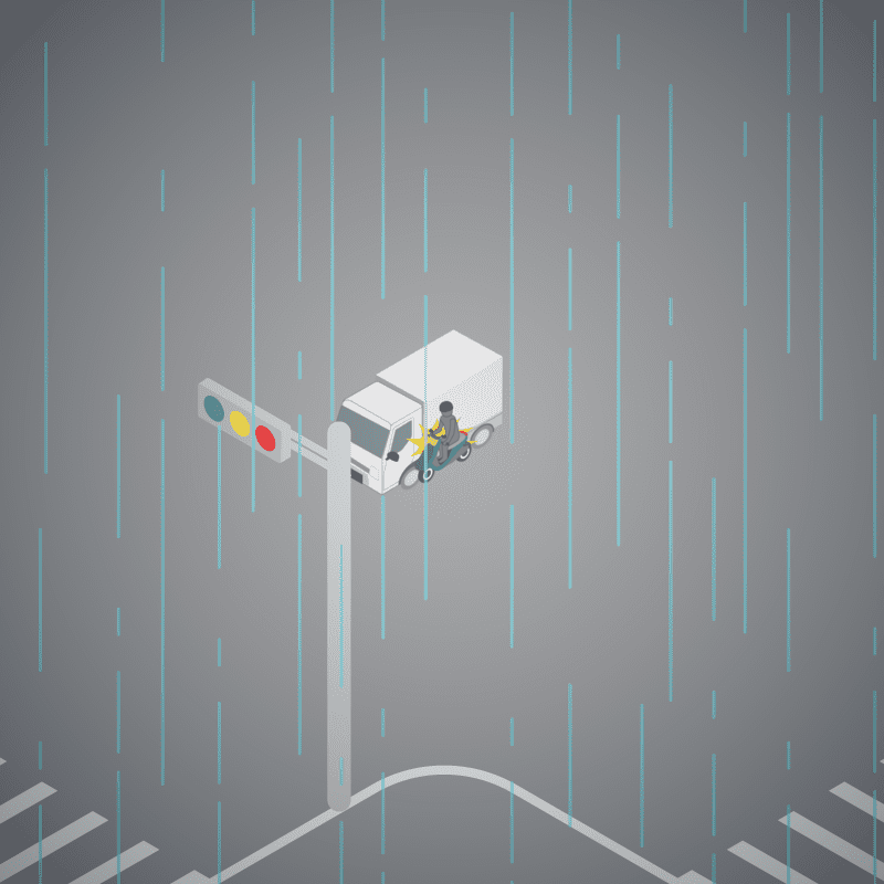 ・イラストに使用している各要素(車、背景、車、天候、信号、衝突地点など)は、代表的なイメージをイラスト化しており、色や形状等含め現実の事故の状況とは異なります。あくまで、事故のイメージとして参考までにご活用ください。