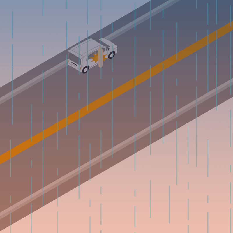 ・イラストに使用している各要素(車、背景、車、天候、信号、衝突地点など)は、代表的なイメージをイラスト化しており、色や形状等含め現実の事故の状況とは異なります。あくまで、事故のイメージとして参考までにご活用ください。