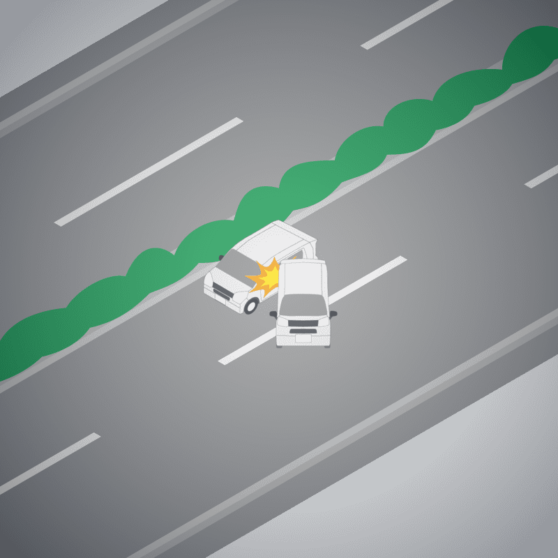 ・イラストに使用している各要素(車、背景、車、天候、信号、衝突地点など)は、代表的なイメージをイラスト化しており、色や形状等含め現実の事故の状況とは異なります。あくまで、事故のイメージとして参考までにご活用ください。