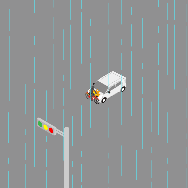 ・イラストに使用している各要素(車、背景、車、天候、信号、衝突地点など)は、代表的なイメージをイラスト化しており、色や形状等含め現実の事故の状況とは異なります。あくまで、事故のイメージとして参考までにご活用ください。