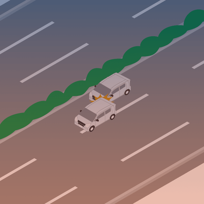・イラストに使用している各要素(車、背景、車、天候、信号、衝突地点など)は、代表的なイメージをイラスト化しており、色や形状等含め現実の事故の状況とは異なります。あくまで、事故のイメージとして参考までにご活用ください。