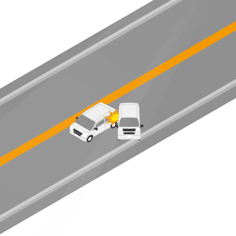 ・イラストに使用している各要素(車、背景、車、天候、信号、衝突地点など)は、代表的なイメージをイラスト化しており、色や形状等含め現実の事故の状況とは異なります。あくまで、事故のイメージとして参考までにご活用ください。