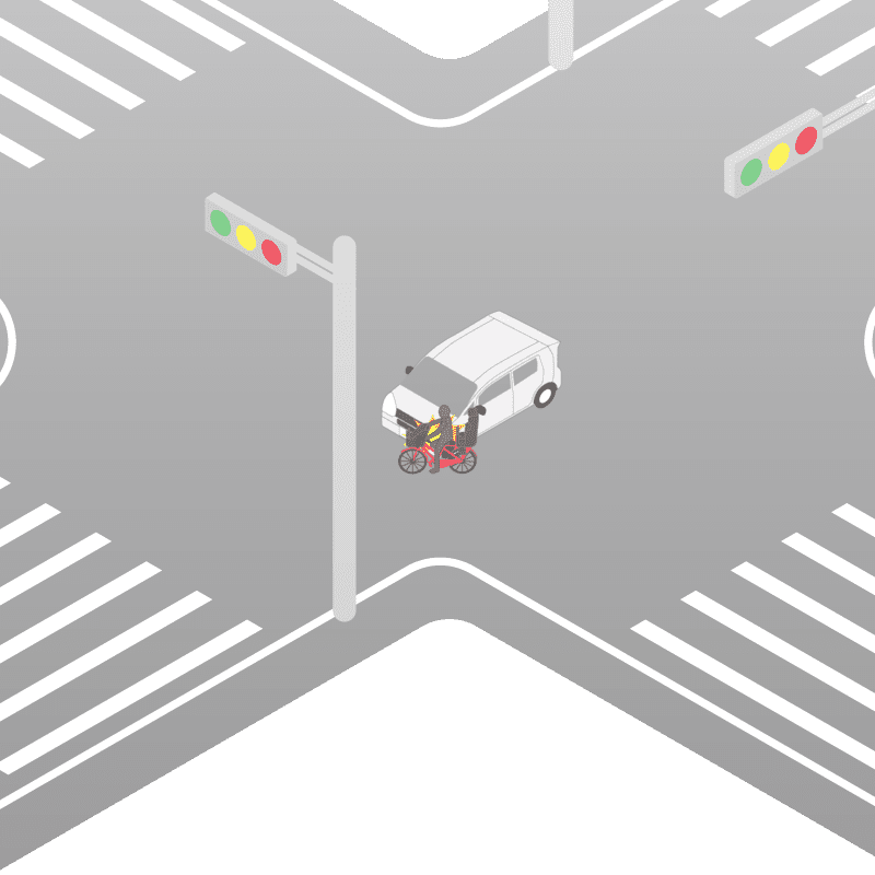 ・イラストに使用している各要素(車、背景、車、天候、信号、衝突地点など)は、代表的なイメージをイラスト化しており、色や形状等含め現実の事故の状況とは異なります。あくまで、事故のイメージとして参考までにご活用ください。