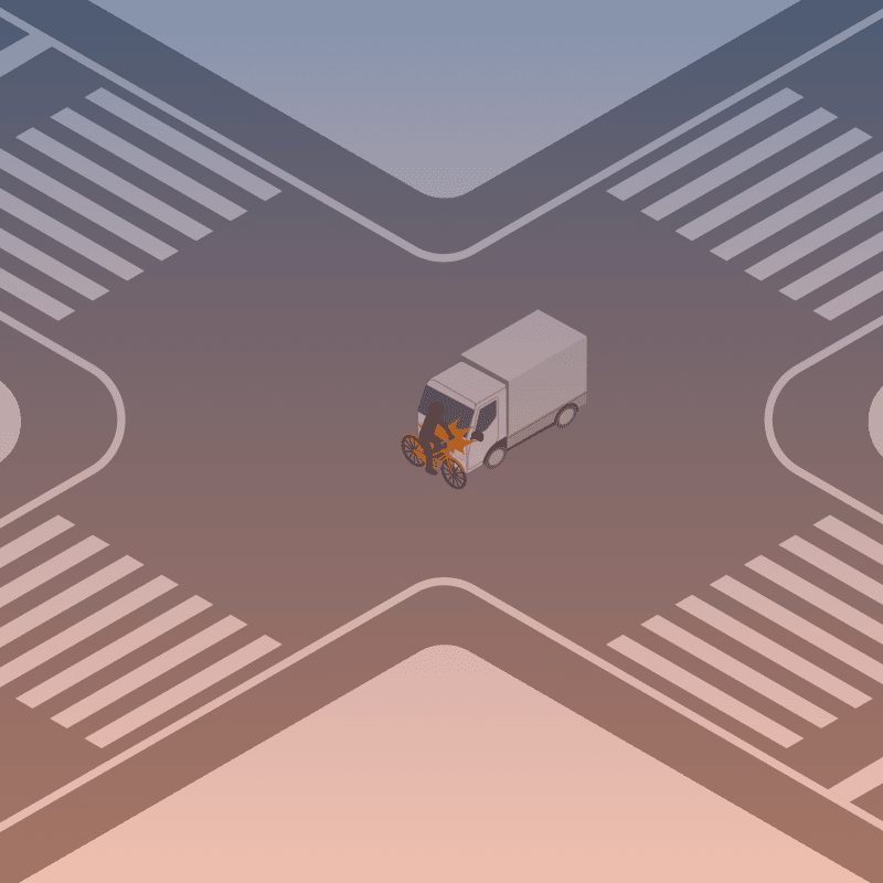 ・イラストに使用している各要素(車、背景、車、天候、信号、衝突地点など)は、代表的なイメージをイラスト化しており、色や形状等含め現実の事故の状況とは異なります。あくまで、事故のイメージとして参考までにご活用ください。