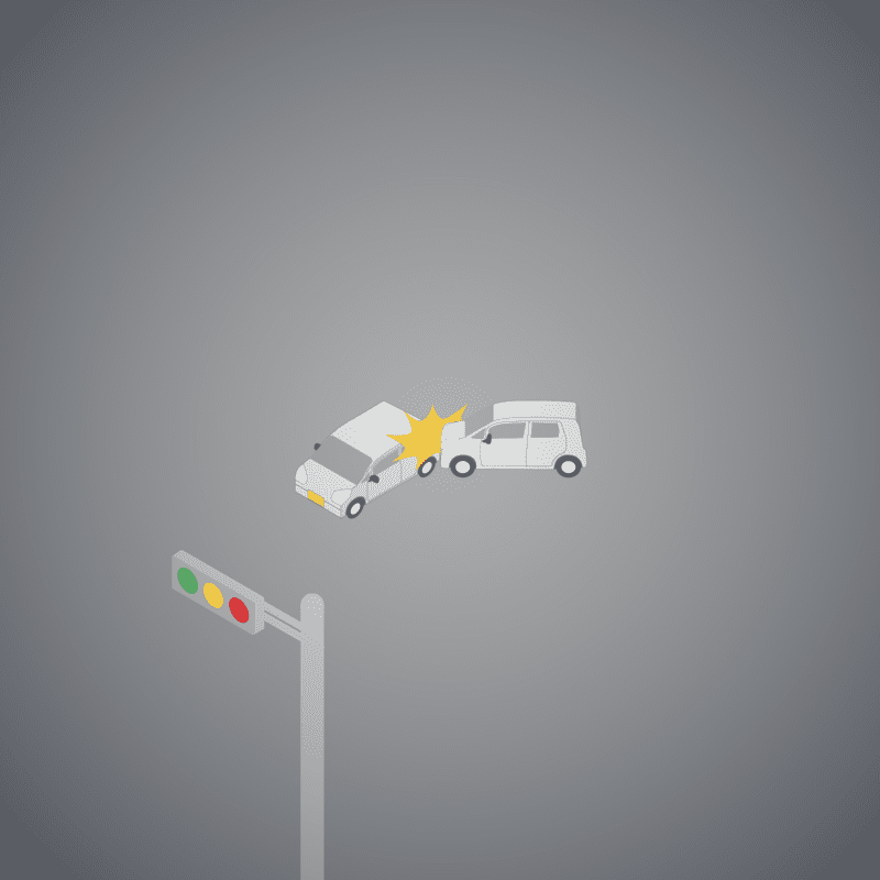 ・イラストに使用している各要素(車、背景、車、天候、信号、衝突地点など)は、代表的なイメージをイラスト化しており、色や形状等含め現実の事故の状況とは異なります。あくまで、事故のイメージとして参考までにご活用ください。