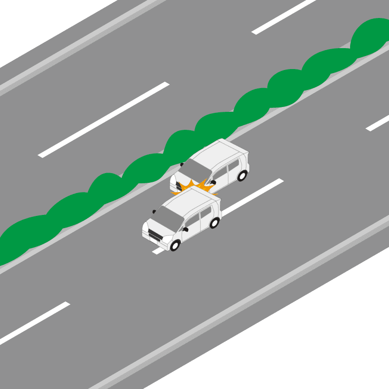 ・イラストに使用している各要素(車、背景、車、天候、信号、衝突地点など)は、代表的なイメージをイラスト化しており、色や形状等含め現実の事故の状況とは異なります。あくまで、事故のイメージとして参考までにご活用ください。