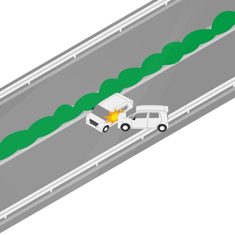 ・イラストに使用している各要素(車、背景、車、天候、信号、衝突地点など)は、代表的なイメージをイラスト化しており、色や形状等含め現実の事故の状況とは異なります。あくまで、事故のイメージとして参考までにご活用ください。