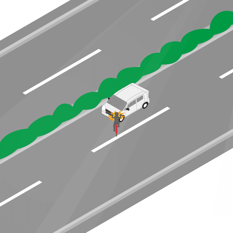 ・イラストに使用している各要素(車、背景、車、天候、信号、衝突地点など)は、代表的なイメージをイラスト化しており、色や形状等含め現実の事故の状況とは異なります。あくまで、事故のイメージとして参考までにご活用ください。
