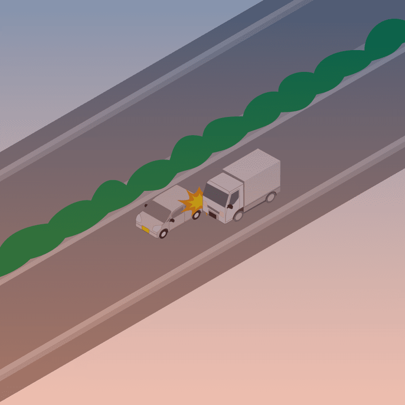 ・イラストに使用している各要素(車、背景、車、天候、信号、衝突地点など)は、代表的なイメージをイラスト化しており、色や形状等含め現実の事故の状況とは異なります。あくまで、事故のイメージとして参考までにご活用ください。