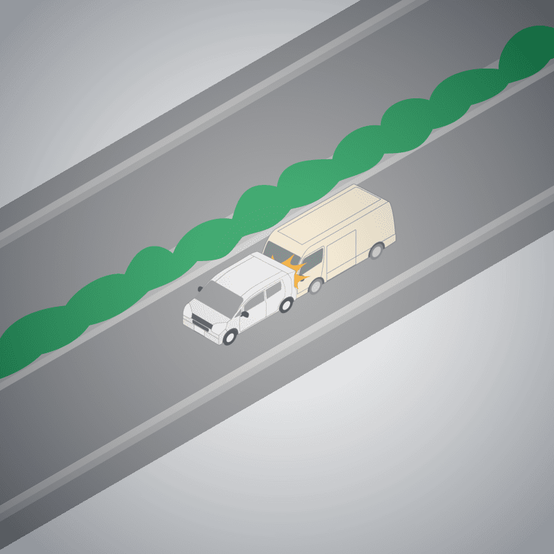 ・イラストに使用している各要素(車、背景、車、天候、信号、衝突地点など)は、代表的なイメージをイラスト化しており、色や形状等含め現実の事故の状況とは異なります。あくまで、事故のイメージとして参考までにご活用ください。