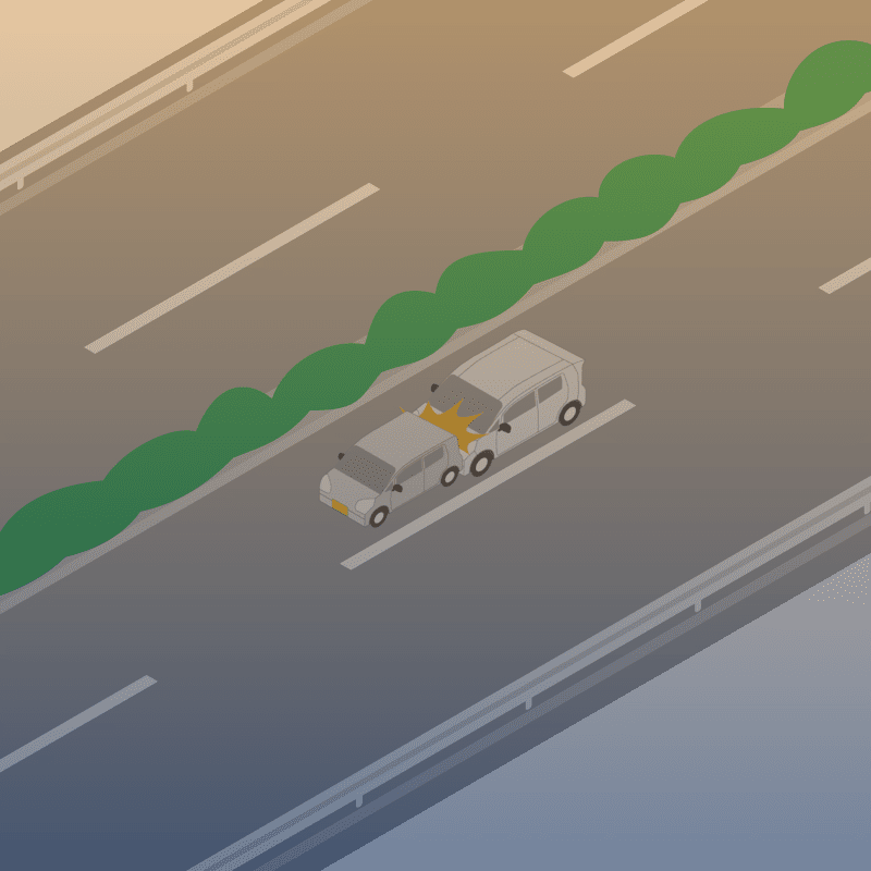 ・イラストに使用している各要素(車、背景、車、天候、信号、衝突地点など)は、代表的なイメージをイラスト化しており、色や形状等含め現実の事故の状況とは異なります。あくまで、事故のイメージとして参考までにご活用ください。