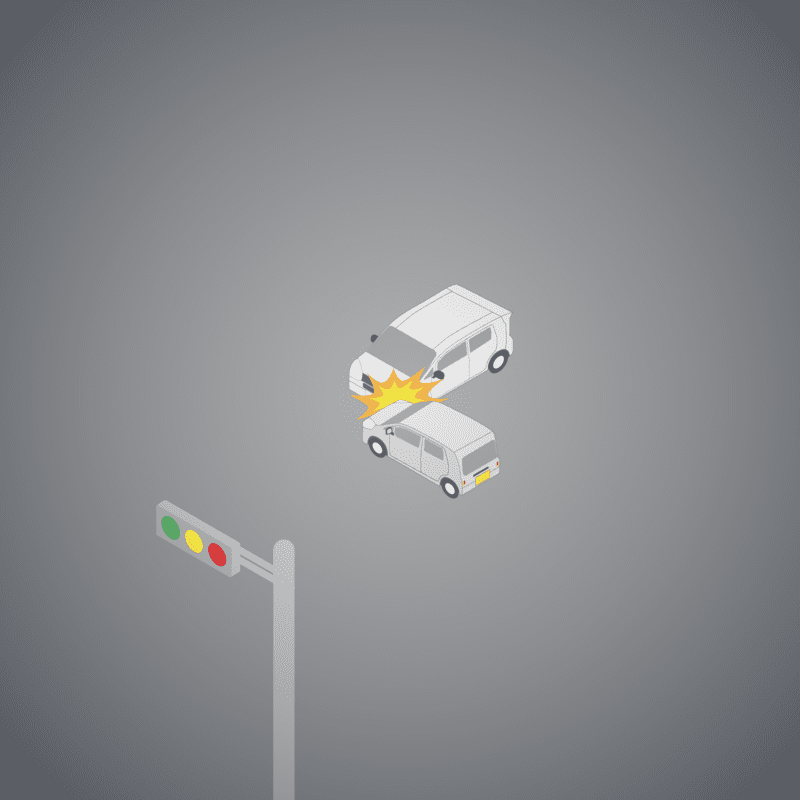 ・イラストに使用している各要素(車、背景、車、天候、信号、衝突地点など)は、代表的なイメージをイラスト化しており、色や形状等含め現実の事故の状況とは異なります。あくまで、事故のイメージとして参考までにご活用ください。