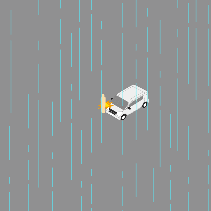 ・イラストに使用している各要素(車、背景、車、天候、信号、衝突地点など)は、代表的なイメージをイラスト化しており、色や形状等含め現実の事故の状況とは異なります。あくまで、事故のイメージとして参考までにご活用ください。