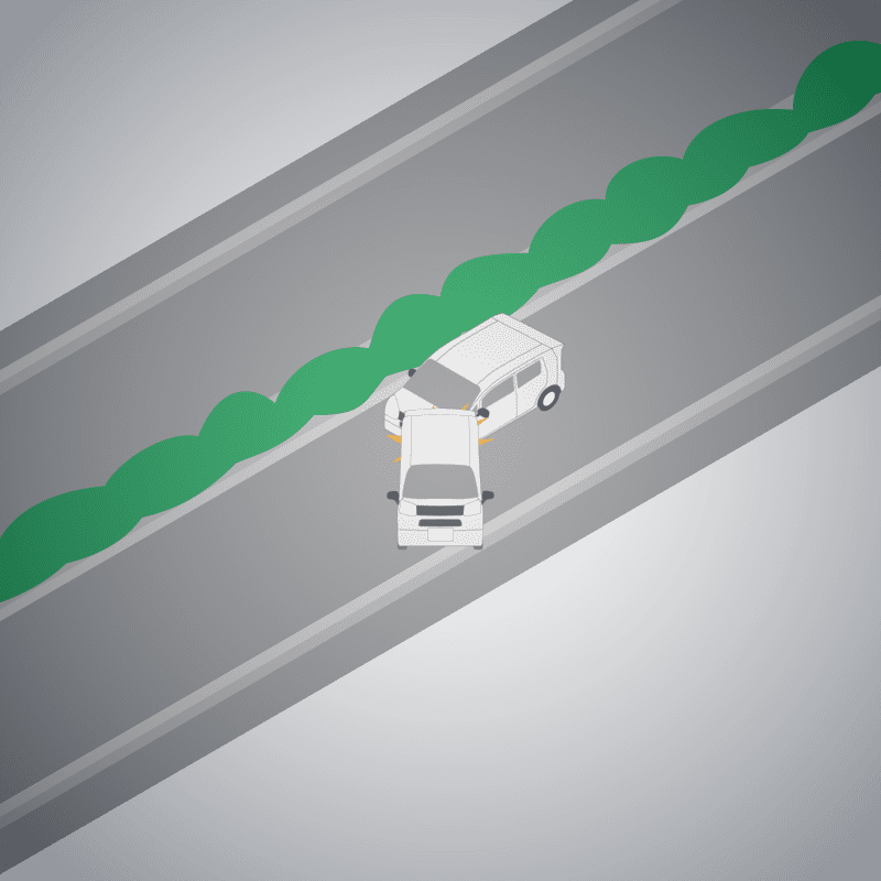 ・イラストに使用している各要素(車、背景、車、天候、信号、衝突地点など)は、代表的なイメージをイラスト化しており、色や形状等含め現実の事故の状況とは異なります。あくまで、事故のイメージとして参考までにご活用ください。