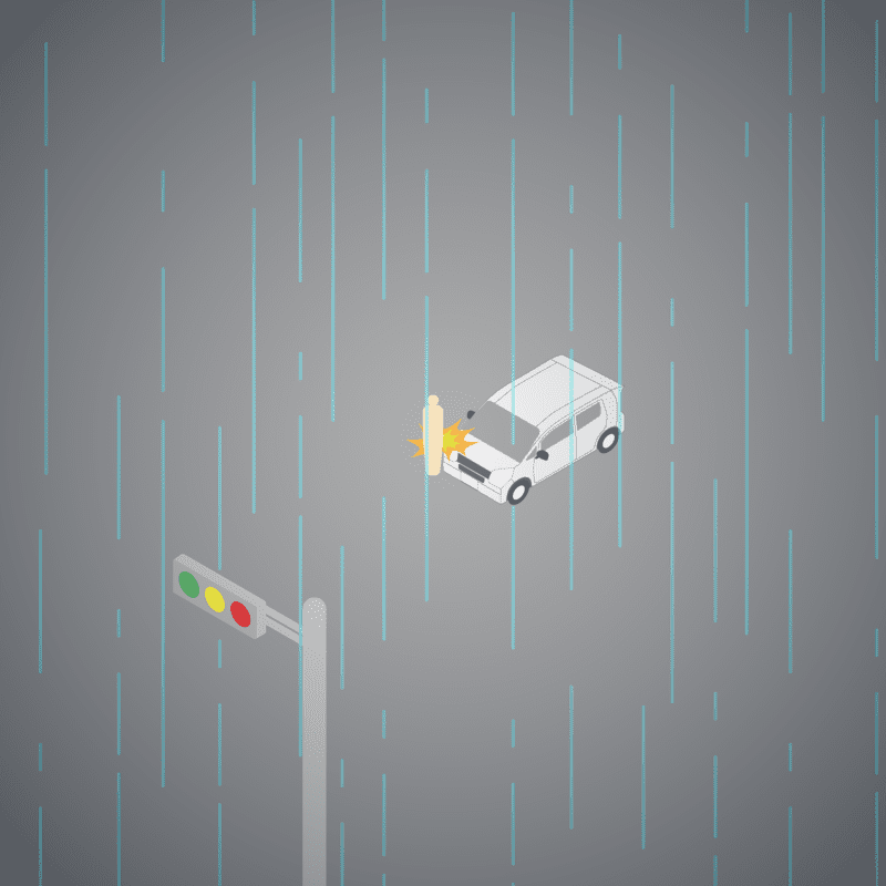 ・イラストに使用している各要素(車、背景、車、天候、信号、衝突地点など)は、代表的なイメージをイラスト化しており、色や形状等含め現実の事故の状況とは異なります。あくまで、事故のイメージとして参考までにご活用ください。