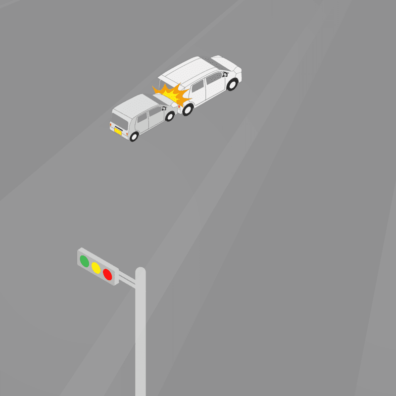 ・イラストに使用している各要素(車、背景、車、天候、信号、衝突地点など)は、代表的なイメージをイラスト化しており、色や形状等含め現実の事故の状況とは異なります。あくまで、事故のイメージとして参考までにご活用ください。
