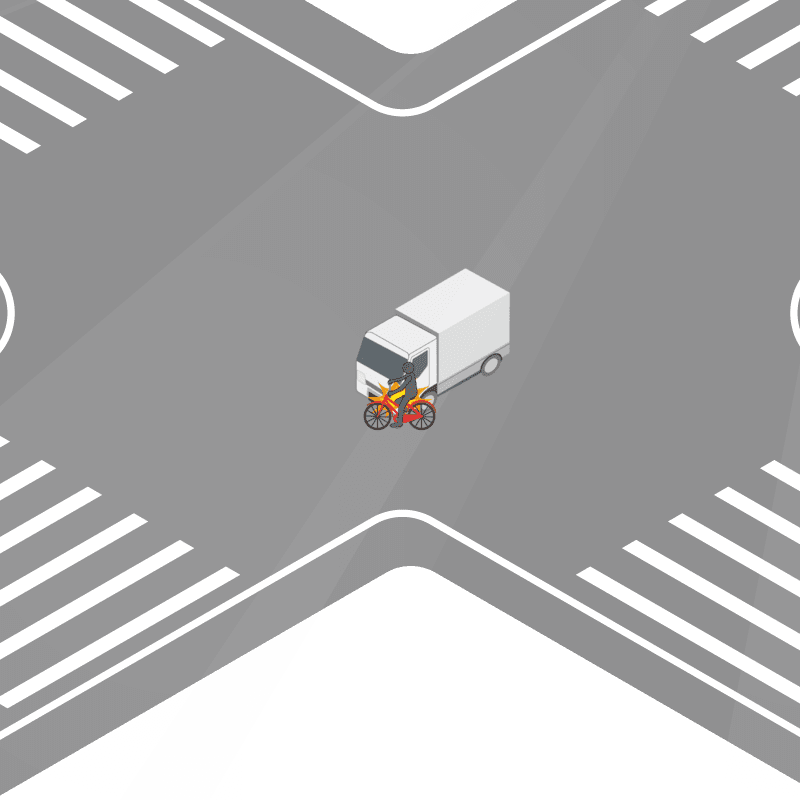 ・イラストに使用している各要素(車、背景、車、天候、信号、衝突地点など)は、代表的なイメージをイラスト化しており、色や形状等含め現実の事故の状況とは異なります。あくまで、事故のイメージとして参考までにご活用ください。