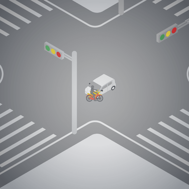 ・イラストに使用している各要素(車、背景、車、天候、信号、衝突地点など)は、代表的なイメージをイラスト化しており、色や形状等含め現実の事故の状況とは異なります。あくまで、事故のイメージとして参考までにご活用ください。