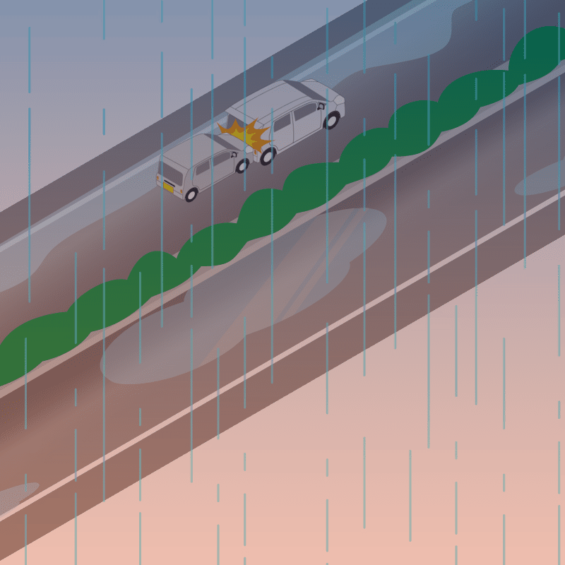 ・イラストに使用している各要素(車、背景、車、天候、信号、衝突地点など)は、代表的なイメージをイラスト化しており、色や形状等含め現実の事故の状況とは異なります。あくまで、事故のイメージとして参考までにご活用ください。