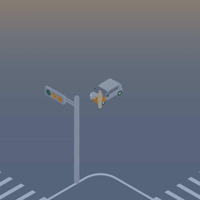 ・イラストに使用している各要素(車、背景、車、天候、信号、衝突地点など)は、代表的なイメージをイラスト化しており、色や形状等含め現実の事故の状況とは異なります。あくまで、事故のイメージとして参考までにご活用ください。