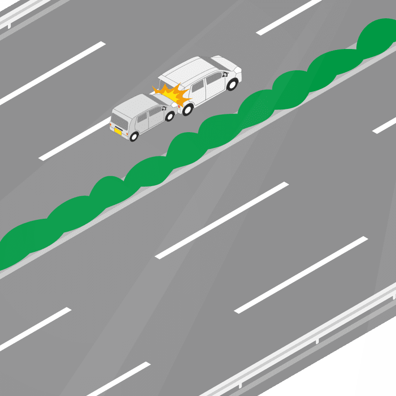 ・イラストに使用している各要素(車、背景、車、天候、信号、衝突地点など)は、代表的なイメージをイラスト化しており、色や形状等含め現実の事故の状況とは異なります。あくまで、事故のイメージとして参考までにご活用ください。