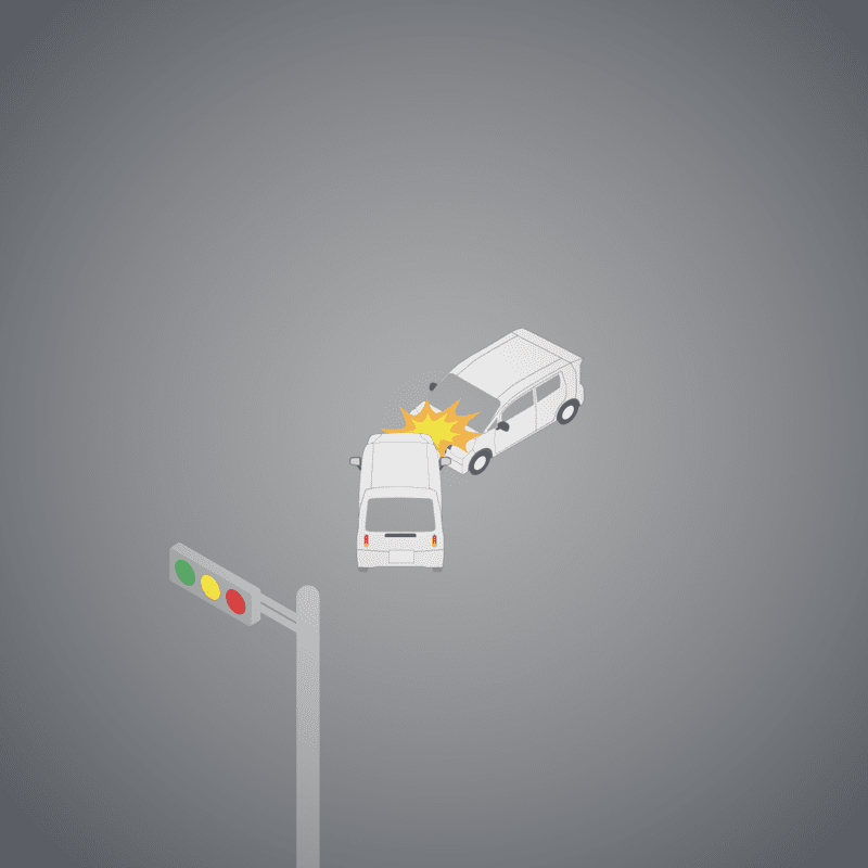 ・イラストに使用している各要素(車、背景、車、天候、信号、衝突地点など)は、代表的なイメージをイラスト化しており、色や形状等含め現実の事故の状況とは異なります。あくまで、事故のイメージとして参考までにご活用ください。