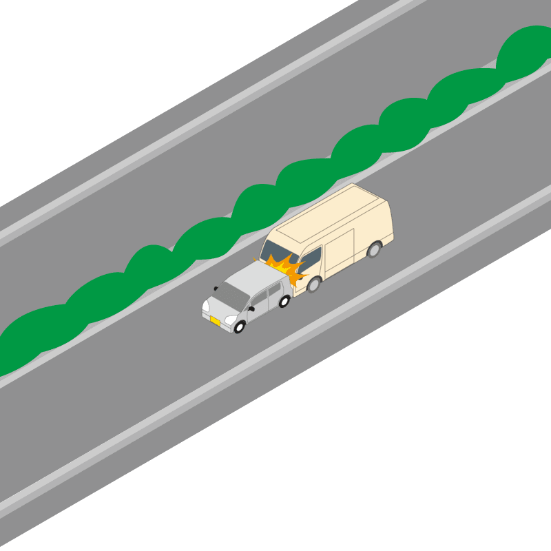 ・イラストに使用している各要素(車、背景、車、天候、信号、衝突地点など)は、代表的なイメージをイラスト化しており、色や形状等含め現実の事故の状況とは異なります。あくまで、事故のイメージとして参考までにご活用ください。