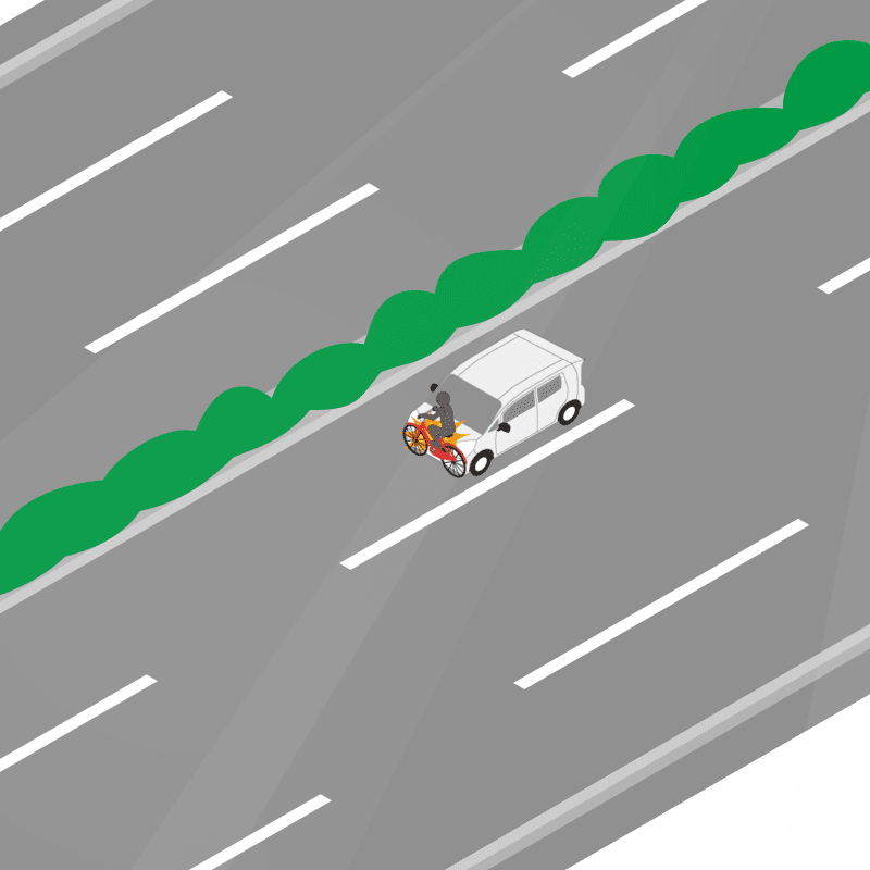 ・イラストに使用している各要素(車、背景、車、天候、信号、衝突地点など)は、代表的なイメージをイラスト化しており、色や形状等含め現実の事故の状況とは異なります。あくまで、事故のイメージとして参考までにご活用ください。