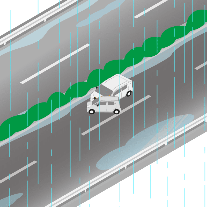 ・イラストに使用している各要素(車、背景、車、天候、信号、衝突地点など)は、代表的なイメージをイラスト化しており、色や形状等含め現実の事故の状況とは異なります。あくまで、事故のイメージとして参考までにご活用ください。