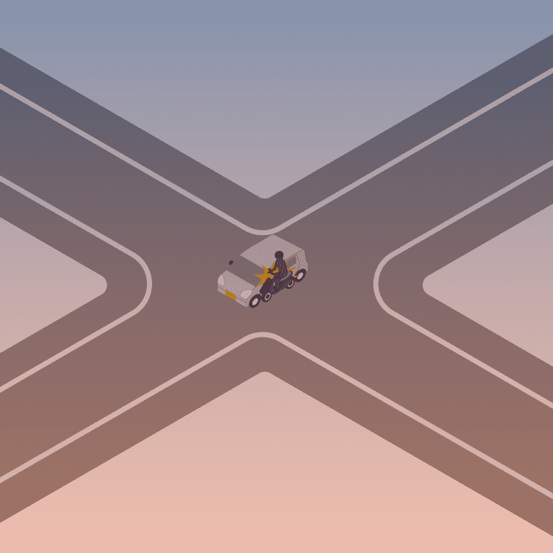 ・イラストに使用している各要素(車、背景、車、天候、信号、衝突地点など)は、代表的なイメージをイラスト化しており、色や形状等含め現実の事故の状況とは異なります。あくまで、事故のイメージとして参考までにご活用ください。