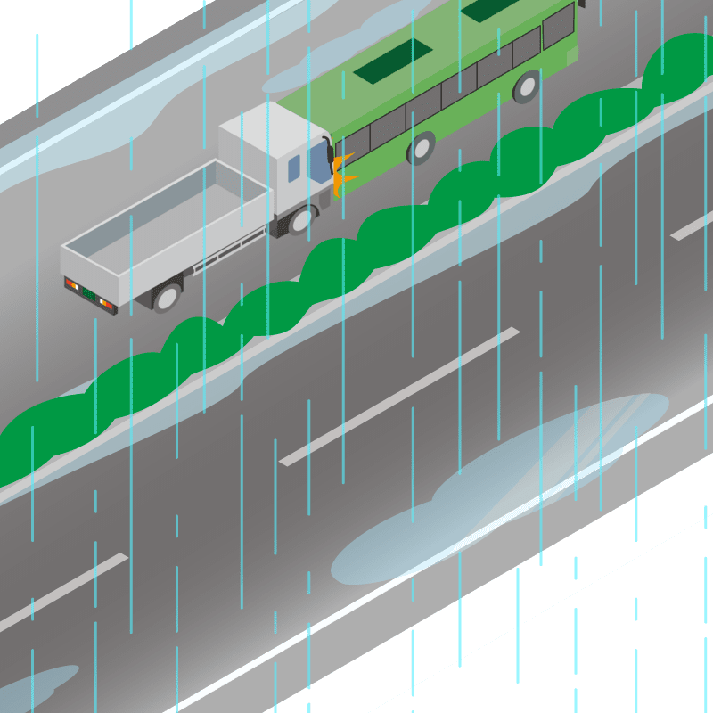 ・イラストに使用している各要素(車、背景、車、天候、信号、衝突地点など)は、代表的なイメージをイラスト化しており、色や形状等含め現実の事故の状況とは異なります。あくまで、事故のイメージとして参考までにご活用ください。
