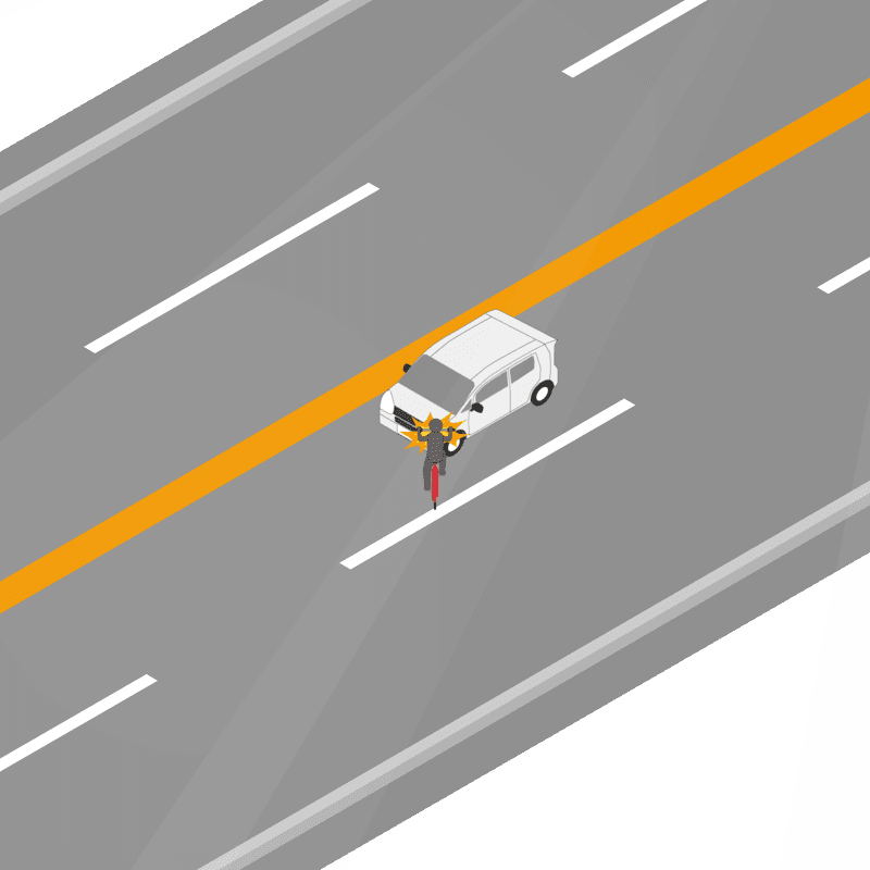 ・イラストに使用している各要素(車、背景、車、天候、信号、衝突地点など)は、代表的なイメージをイラスト化しており、色や形状等含め現実の事故の状況とは異なります。あくまで、事故のイメージとして参考までにご活用ください。