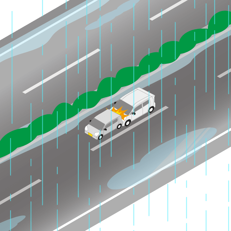 ・イラストに使用している各要素(車、背景、車、天候、信号、衝突地点など)は、代表的なイメージをイラスト化しており、色や形状等含め現実の事故の状況とは異なります。あくまで、事故のイメージとして参考までにご活用ください。