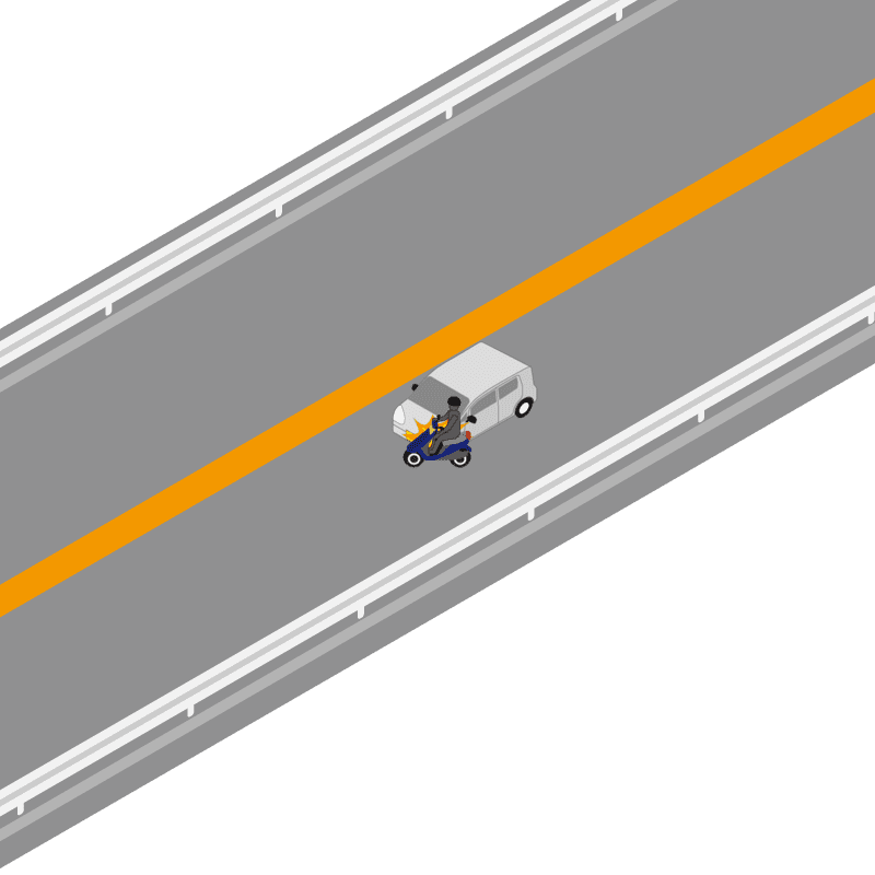 ・イラストに使用している各要素(車、背景、車、天候、信号、衝突地点など)は、代表的なイメージをイラスト化しており、色や形状等含め現実の事故の状況とは異なります。あくまで、事故のイメージとして参考までにご活用ください。