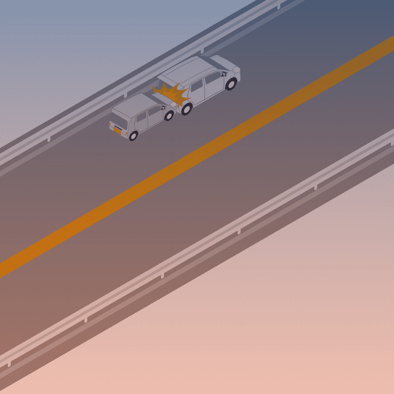 ・イラストに使用している各要素(車、背景、車、天候、信号、衝突地点など)は、代表的なイメージをイラスト化しており、色や形状等含め現実の事故の状況とは異なります。あくまで、事故のイメージとして参考までにご活用ください。