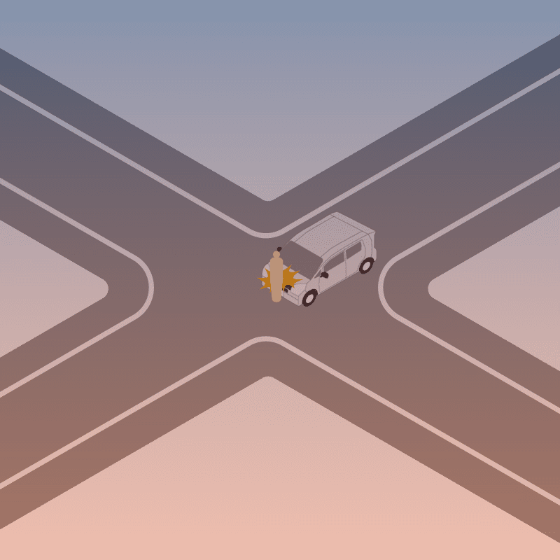 ・イラストに使用している各要素(車、背景、車、天候、信号、衝突地点など)は、代表的なイメージをイラスト化しており、色や形状等含め現実の事故の状況とは異なります。あくまで、事故のイメージとして参考までにご活用ください。