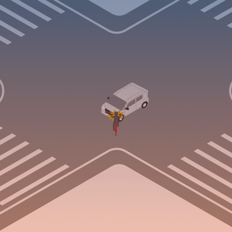 ・イラストに使用している各要素(車、背景、車、天候、信号、衝突地点など)は、代表的なイメージをイラスト化しており、色や形状等含め現実の事故の状況とは異なります。あくまで、事故のイメージとして参考までにご活用ください。