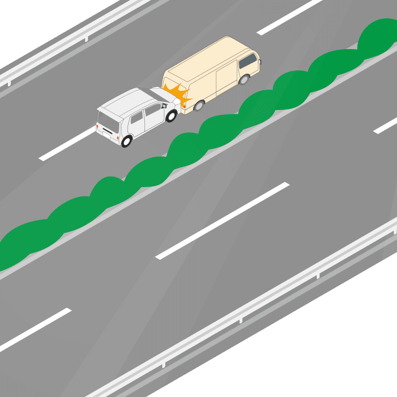 ・イラストに使用している各要素(車、背景、車、天候、信号、衝突地点など)は、代表的なイメージをイラスト化しており、色や形状等含め現実の事故の状況とは異なります。あくまで、事故のイメージとして参考までにご活用ください。