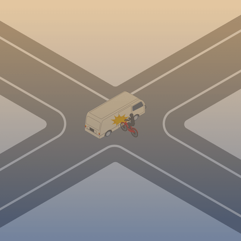 ・イラストに使用している各要素(車、背景、車、天候、信号、衝突地点など)は、代表的なイメージをイラスト化しており、色や形状等含め現実の事故の状況とは異なります。あくまで、事故のイメージとして参考までにご活用ください。