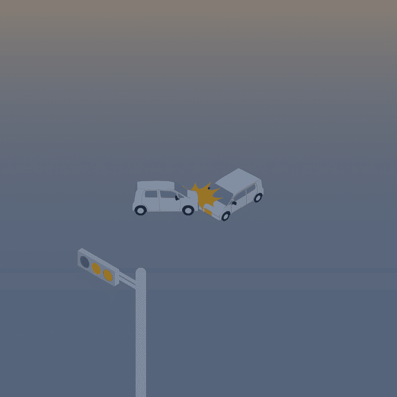 ・イラストに使用している各要素(車、背景、車、天候、信号、衝突地点など)は、代表的なイメージをイラスト化しており、色や形状等含め現実の事故の状況とは異なります。あくまで、事故のイメージとして参考までにご活用ください。