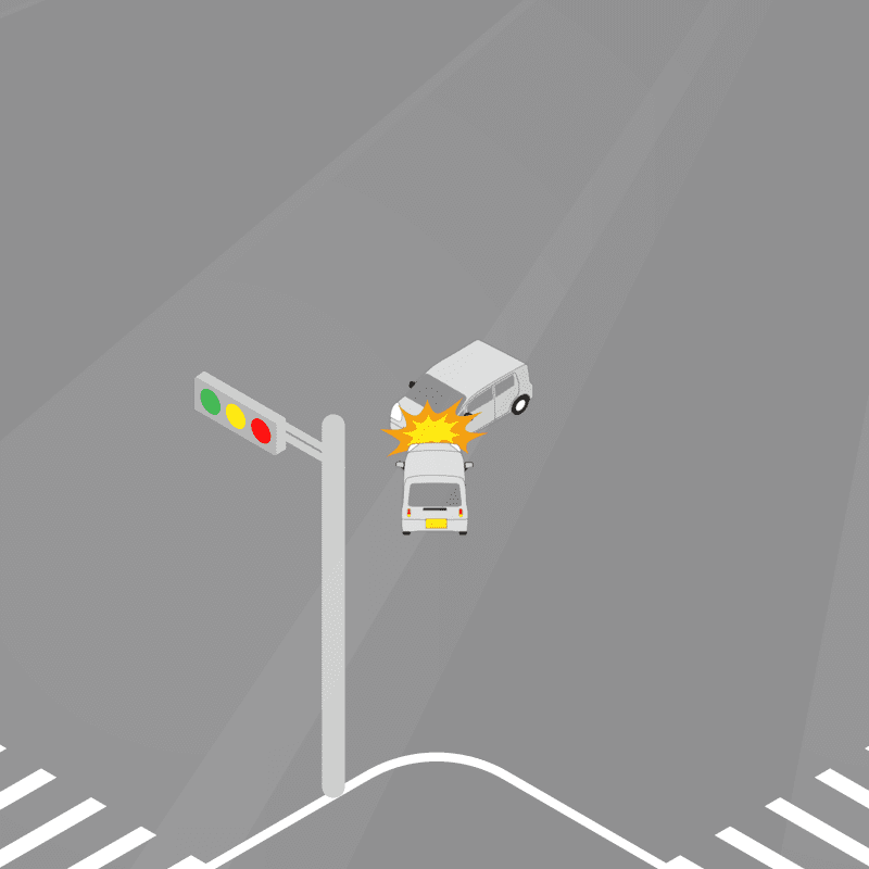 ・イラストに使用している各要素(車、背景、車、天候、信号、衝突地点など)は、代表的なイメージをイラスト化しており、色や形状等含め現実の事故の状況とは異なります。あくまで、事故のイメージとして参考までにご活用ください。