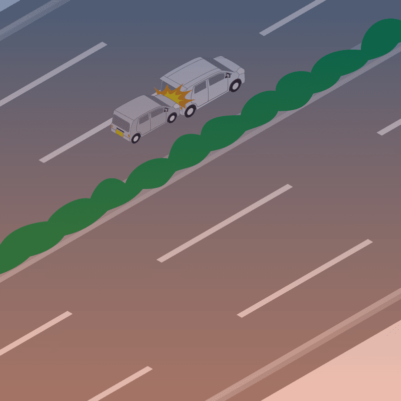・イラストに使用している各要素(車、背景、車、天候、信号、衝突地点など)は、代表的なイメージをイラスト化しており、色や形状等含め現実の事故の状況とは異なります。あくまで、事故のイメージとして参考までにご活用ください。