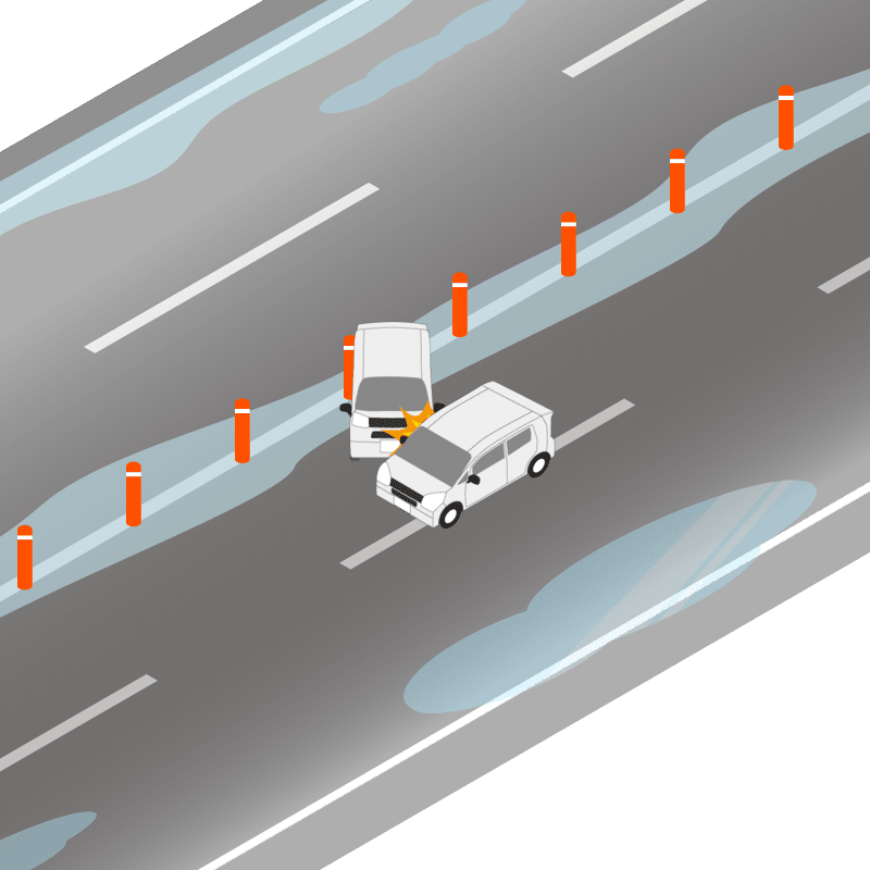 ・イラストに使用している各要素(車、背景、車、天候、信号、衝突地点など)は、代表的なイメージをイラスト化しており、色や形状等含め現実の事故の状況とは異なります。あくまで、事故のイメージとして参考までにご活用ください。