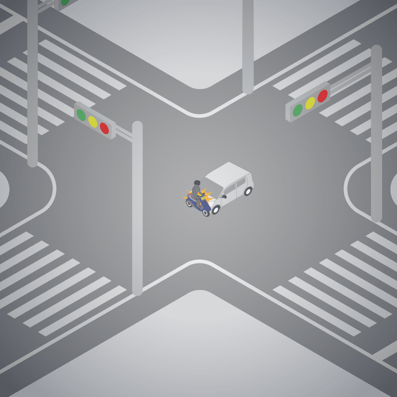 ・イラストに使用している各要素(車、背景、車、天候、信号、衝突地点など)は、代表的なイメージをイラスト化しており、色や形状等含め現実の事故の状況とは異なります。あくまで、事故のイメージとして参考までにご活用ください。