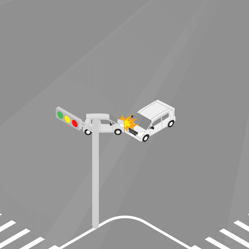 ・イラストに使用している各要素(車、背景、車、天候、信号、衝突地点など)は、代表的なイメージをイラスト化しており、色や形状等含め現実の事故の状況とは異なります。あくまで、事故のイメージとして参考までにご活用ください。