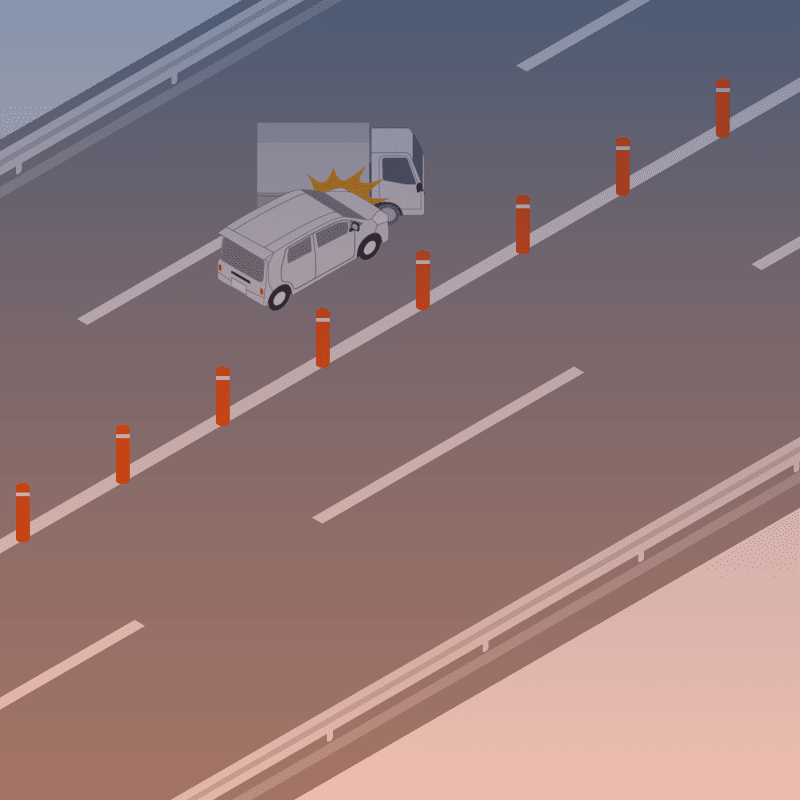 ・イラストに使用している各要素(車、背景、車、天候、信号、衝突地点など)は、代表的なイメージをイラスト化しており、色や形状等含め現実の事故の状況とは異なります。あくまで、事故のイメージとして参考までにご活用ください。