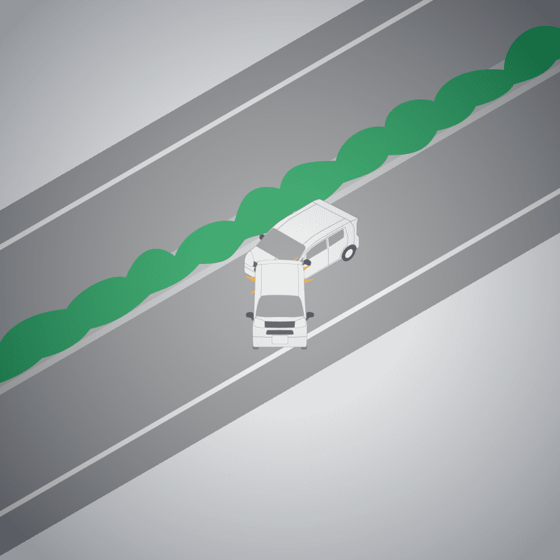 ・イラストに使用している各要素(車、背景、車、天候、信号、衝突地点など)は、代表的なイメージをイラスト化しており、色や形状等含め現実の事故の状況とは異なります。あくまで、事故のイメージとして参考までにご活用ください。