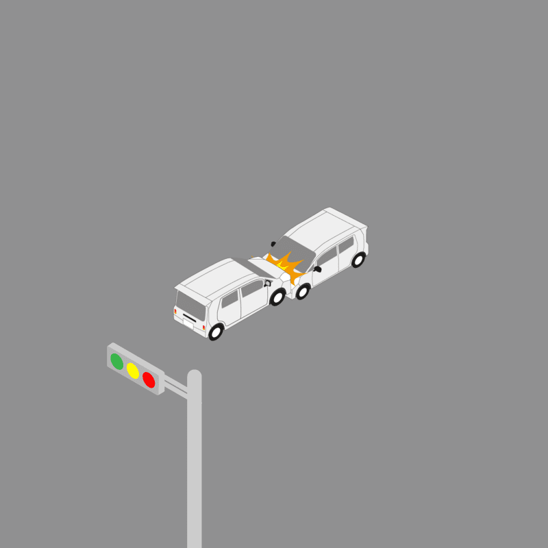 ・イラストに使用している各要素(車、背景、車、天候、信号、衝突地点など)は、代表的なイメージをイラスト化しており、色や形状等含め現実の事故の状況とは異なります。あくまで、事故のイメージとして参考までにご活用ください。