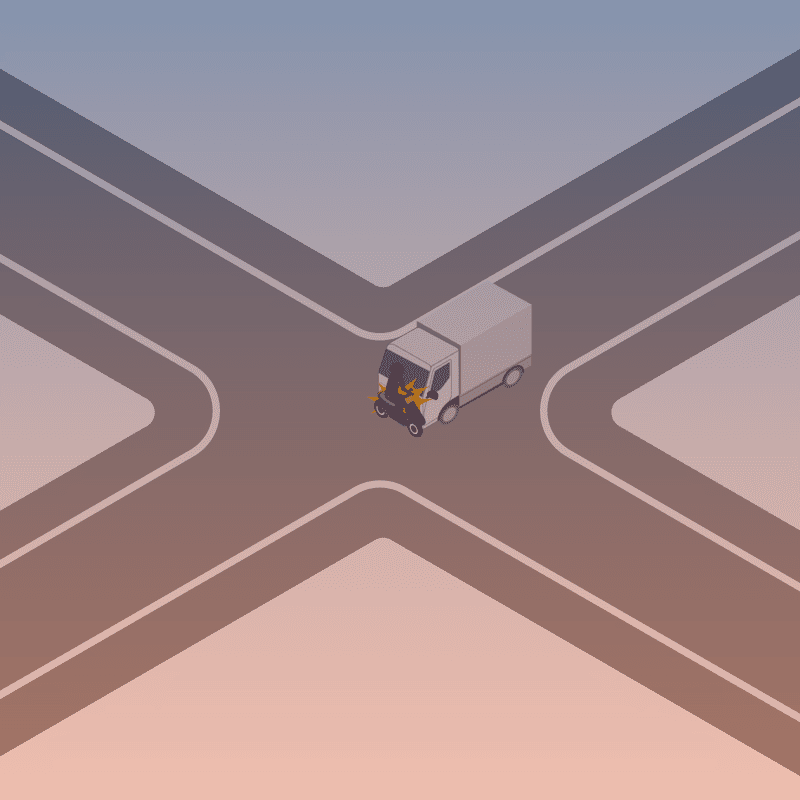 ・イラストに使用している各要素(車、背景、車、天候、信号、衝突地点など)は、代表的なイメージをイラスト化しており、色や形状等含め現実の事故の状況とは異なります。あくまで、事故のイメージとして参考までにご活用ください。